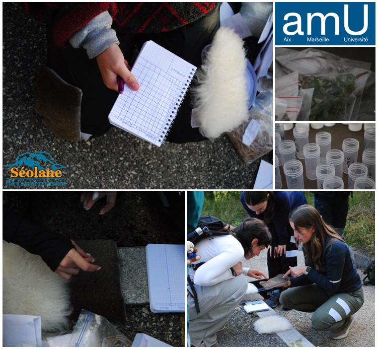 Les étudiants apprennent, entre autres choses, à travailler en équipe en mode projet de recherche. Nous avons pu suivre l’un des groupes qui étudiait, sur la semaine, le rôle de la faune dans la dispersion des graines en altitude et plus spécifiquement la possibilité, pour la faune sauvage, de remplacer les espèces pastorales – et principalement le mouton – dans le transport de graines en altitude grâce à leur fourrure.