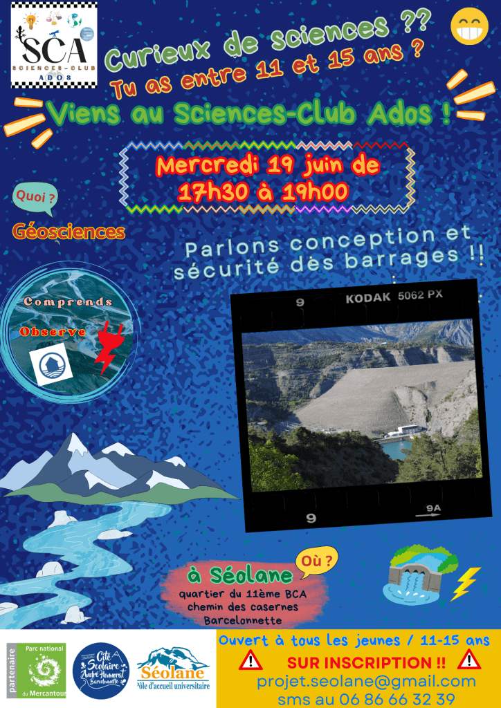 Le Sciences-Club Ados propose ce mois-ci une animation scientifique sur le thème de l’hydroélectricité : nous parlerons des barrages, de leur conception et de leur sécurité.