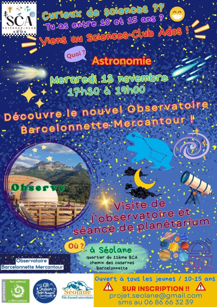 Pour la séance de novembre, nous proposons aux jeunes de découvrir l’Observatoire Barcelonnette Mercantour qui a ouvert ses portes le mois dernier ! 🪐 🌌 🌙